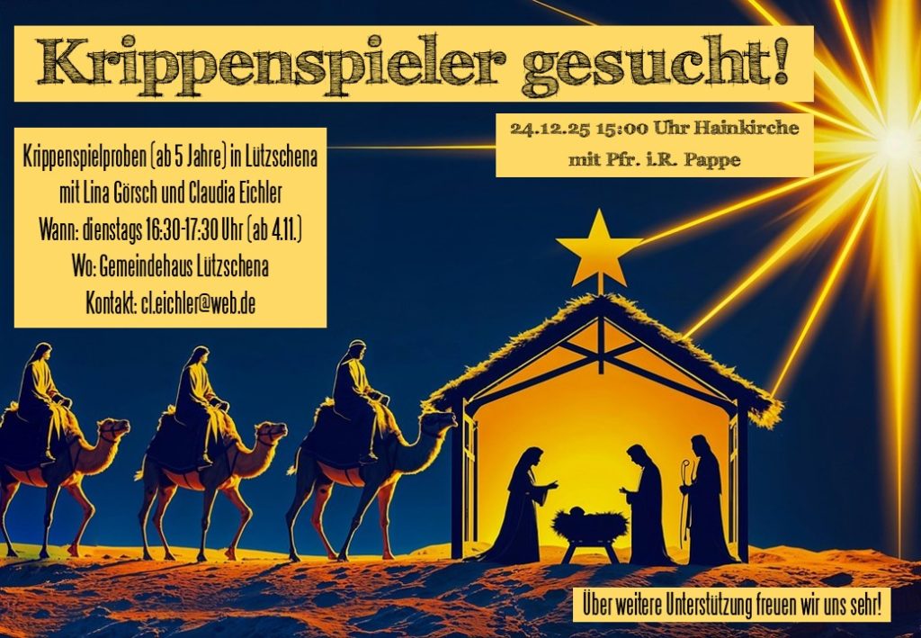 Krippenspielerinnen und Krippenspieler in Lützschena gesucht! Probenbeginn Di 4.11.25 16:30