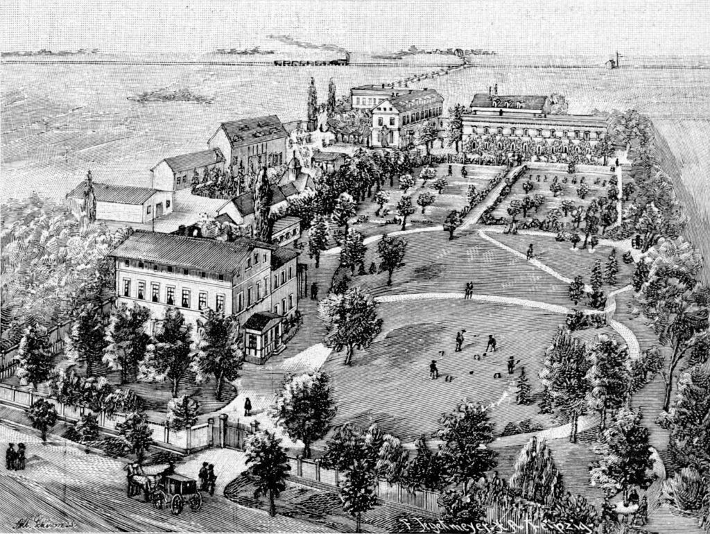 So kann das seit dem Februar 1931 als Kirchgemeindehaus genutzte Gebäude in der Georg-Schumann-Straße 198 auf eine bewegte Vergangenheit zurückblicken. Erbaut auf dem Areal der Völkerschlacht bei Möckern (16.10.1813) als Villa an der Chaussee in Richtung Halle/Saale in den frühen 1820er Jahren, ein erster Umbau ist für das Jahr 1826 vermerkt, diente es seit 1859 dem Sanitätsrat Dr. med. Ferdinand Kern als Wohnhaus für seine „Kernschen Anstalten“. Anfänglich als Taubstummenanstalt gegründet, dienten die „Kernschen Anstalten“ später auch als Nervenheilanstalt, die europaweite Berühmtheit erlangten und Möckern die Bezeichnung eines „Luftkurortes“ einbrachte, wie historischen Anzeigen zu entnehmen ist.